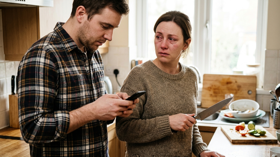 Он ушёл в комнату, включил телевизор. Лена поставила сковороду на конфорку и вдруг замерла. Взгляд упал на разделочную доску, на нож, которым она только что резала лук. Лежит спокойно, ждёт. Ещё минуту назад она бы покорно взялась за готовку, проглотив обиду, как делала тысячи раз. Но что-то щёлкнуло. Тот самый невидимый предохранитель, который годами сдерживал её, заставляя проглатывать обиды, оправдывать мужа усталостью, уговаривать себя, что «у других ещё хуже», — этот предохранитель перегорел.