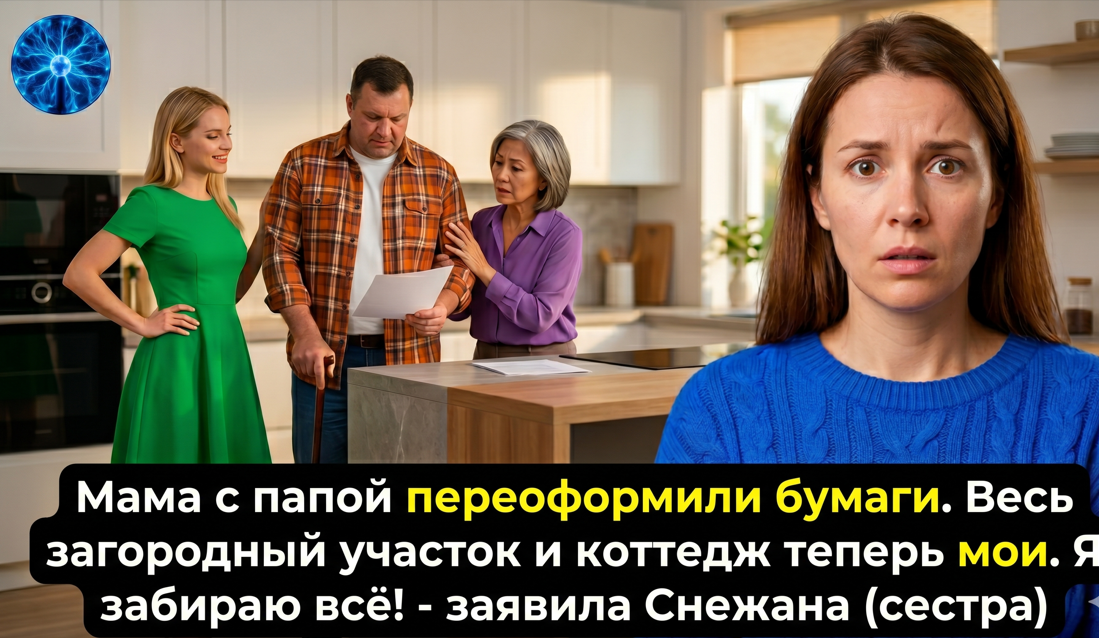 «Спешу тебя обрадовать. Мама с папой переоформили бумаги. Весь загородный участок и коттедж теперь мои. Они решили, что ты и так устроенная, а мне нужнее. Я забираю всё! Как тебе сюрприз?»