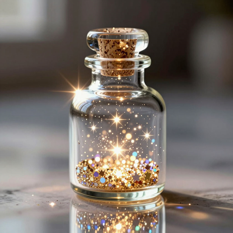 Максим осторожно повернул пузырёк в руках — свет от звёздной пыли внутри заиграл новыми оттенками, отбрасывая мерцающие блики на его лицо.