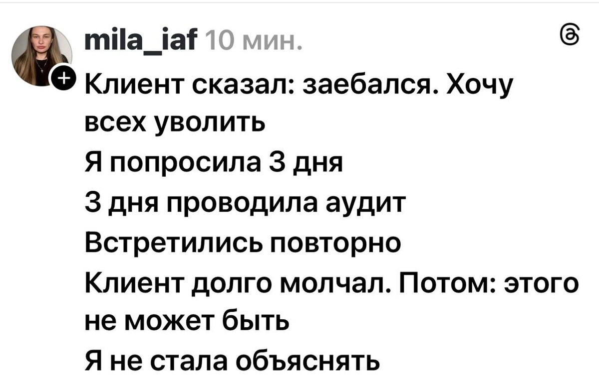 Это все что вам нужно знать про инфоцыган в социальных сетях. Она не стала объяснять, а клиент долго молчал. Рядом сидел и слушал человек пiздешь. Смешно конечно и грустно одновременно. 🟪 MAX ❤ TG