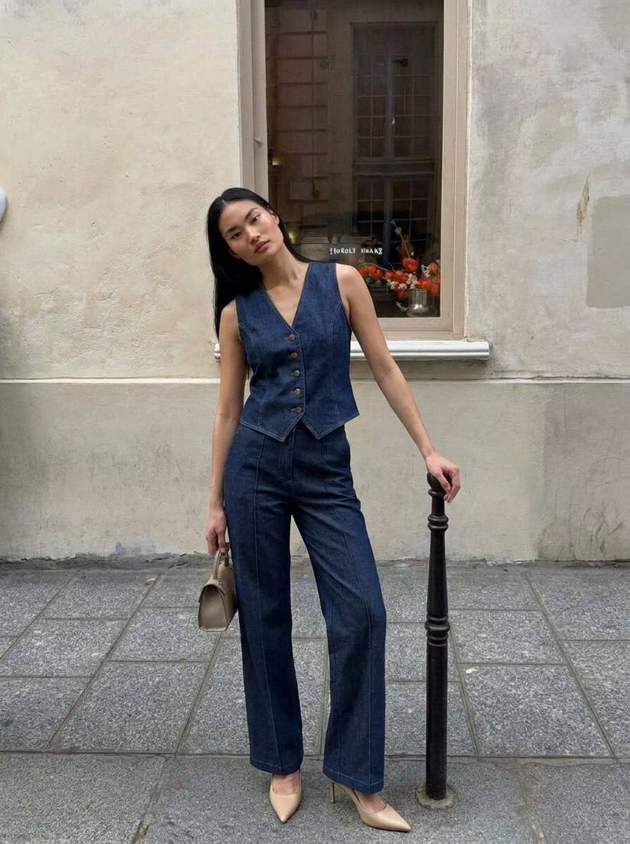 👖✨ Современная классика в новом прочтении. Джинсовый костюм с жилетом — это про свободу, стиль и актуальный городской образ без лишних усилий. Жилет добавляет структуру и делает силуэт более собранным, а деним придаёт образу лёгкость и характер. Почему он работает: ✨ трендовый материал, который всегда актуален ✨ можно носить комплектом или по отдельности ✨ легко вписывается в повседневный гардероб Сочетайте с базовыми футболками, рубашками или носите как самостоятельный образ — и каждый раз он будет звучать по-новому. 💫 Костюм