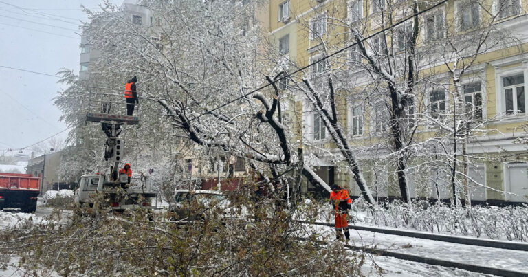 То, что к концу выходных в Москве выпадет снег, нас предупреждали давно все метеорологи. Но, кажется, никто не предвидел, насколько обильно он выпадет — по разным оценкам, до месячной нормы осадков меньше чем за сутки. Почти на 2 мм побит также абсолютный суточный рекорд по осадкам 1880 года. Высота снежного покрова в среднем по городу — 3 см, но в отдельных местах образовались сугробы до 10 см, рассказывает Евгений Тишковец. Эти сугробы усугубляются гололедицей под ними и шквалистым (до 20–25 м/с) ветром над ними. За ночь этот самый ветер вкупе с налипшим на ветви снегом повалил десятки деревьев по всему городу. Итог: по меньшей мере двое погибших в ДТП. Тысячи сменивших резину на летнюю автомобилистов берут штурмом вестибюли и платформы метро. Массовые задержки рейсов (особенно во Внуково и особенно на прилет). Семь опаздывающих до 2,5 часа из-за погоды поездов (!!!) Павелецкого направления. Приостановлено движение поездов между «Партизанской» и «Щелковской» на Арбатско-Покровской ли