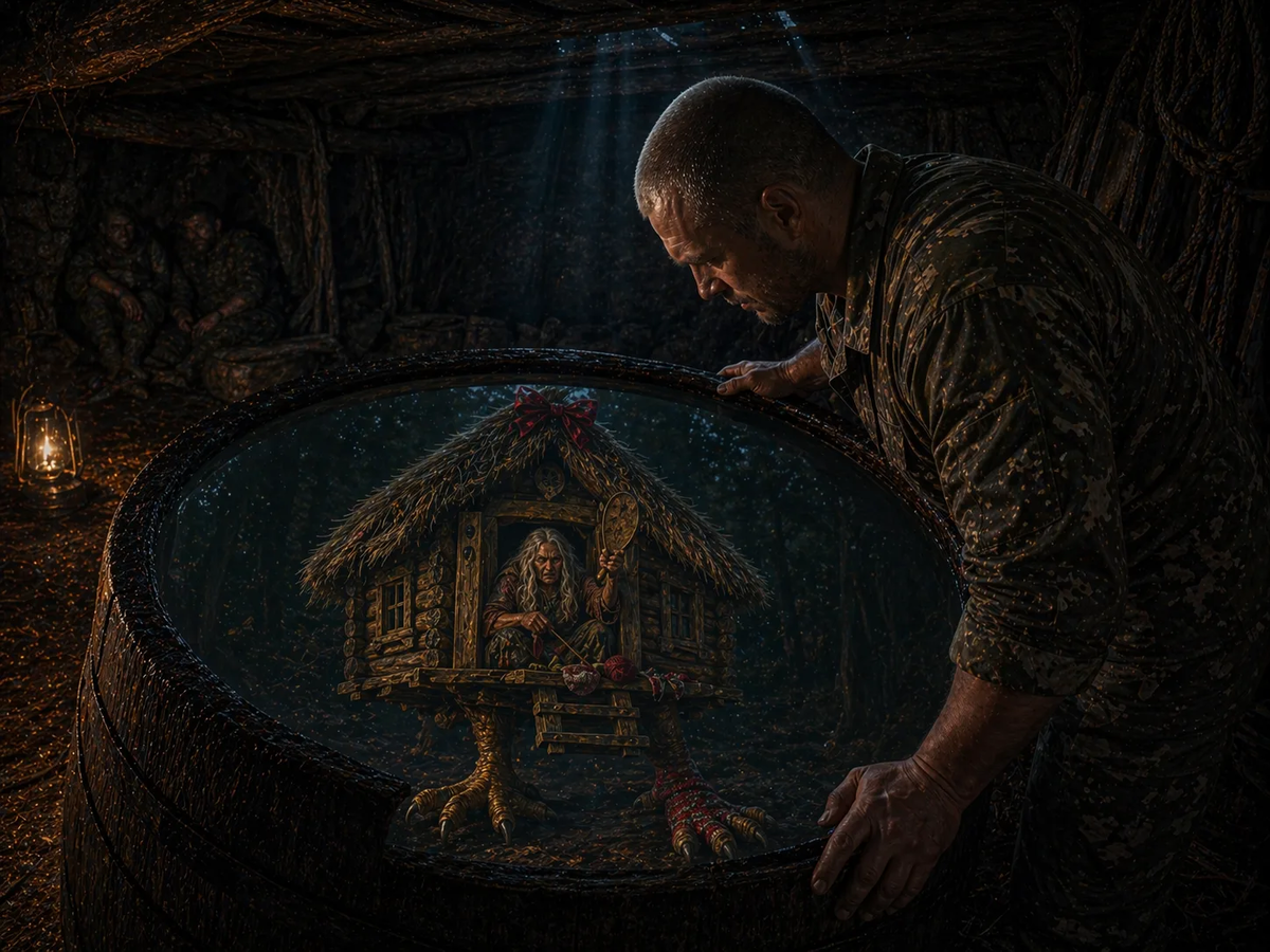 В гладкой поверхности, чёткой картинкой, как в телевизоре, стояла избушка на курьих ногах. Да такая забавная – одна нога в вязанном носке, а соломенная крыша украшена кокетливым красным бантом.