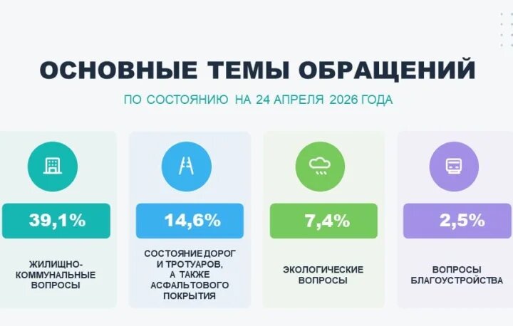 Основная часть обращений связана с вопросами жилищно-коммунального хозяйства. В частности, жители сообщали о состоянии жилищного фонда, работе лифтов, отоплении, горячем и холодном водоснабжении, а также других проблемах, требующих реагирования профильных служб.