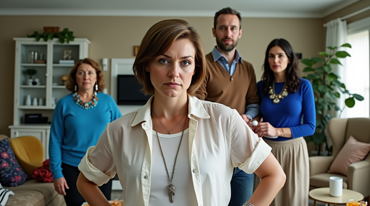 Сергей стоял посреди гостиной, широко расставив ноги, словно готовился к бою. Его лицо покраснело, на лбу выступили капельки пота. Рядом, на диване, замерли его сестра Ольга и мать, Тамара Петровна. Они приехали «просто в гости», но Сергей явно подготовил этот момент заранее. Воздух в комнате сгустился, будто перед грозой.