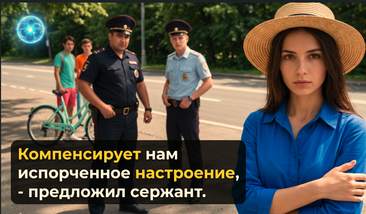 — Я не собираюсь ничего компенсировать, — ровно произнесла она. — Пишите протокол. Я в нем укажу, что двигалась по правилам, а вы вымогали средства.