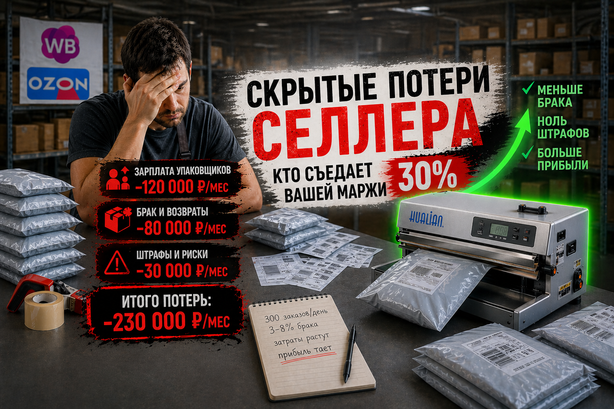 Большинство продавцов на Wildberries и Ozon считают прибыль по простой формуле: выручка минус закупка минус комиссия. Упаковка, скотч, плёнка, время сборщиков — всё это летит в категорию «мелочи». А зря.