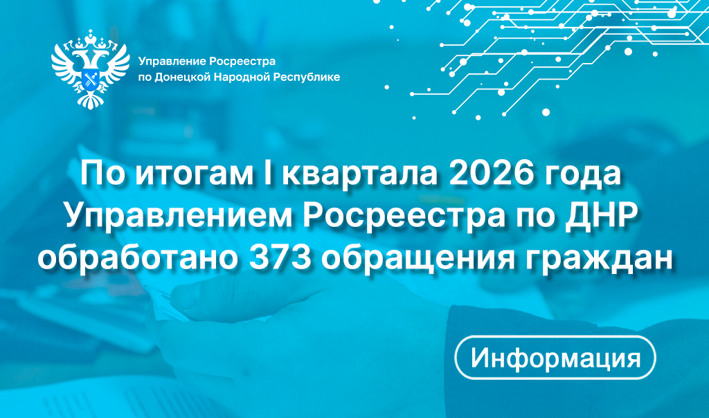 По итогам I квартала 2026 года Управлением Росреестра по ДНР обработано 373 обращения граждан