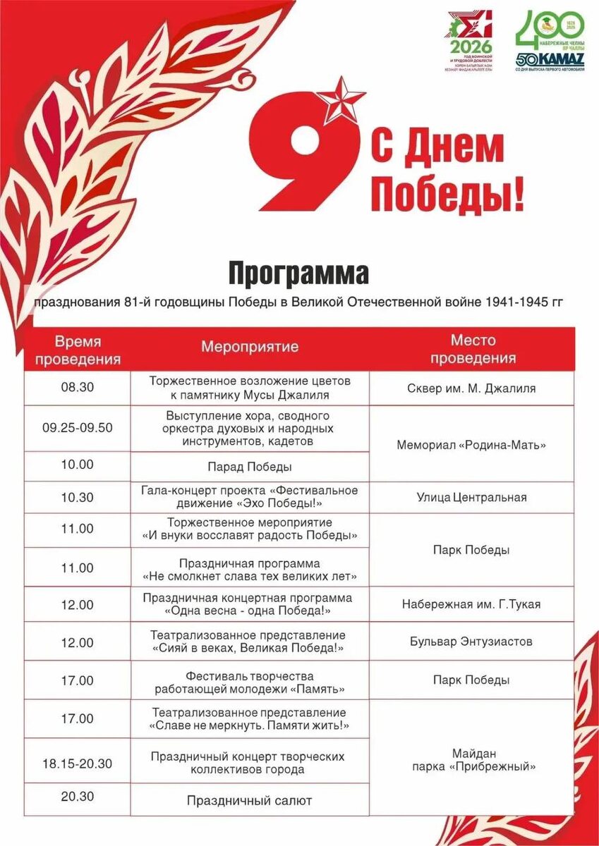 В городе подготовили праздничную программу ко Дню Победы 🇷🇺 📍 Салют начнётся в 20:30 на майдане парка «Прибрежный» Об этом сообщил заместитель руководителя исполкома Винер Харисов, представив афишу мероприятий. Подписывайся на нас в MAX | Пришли свою новость