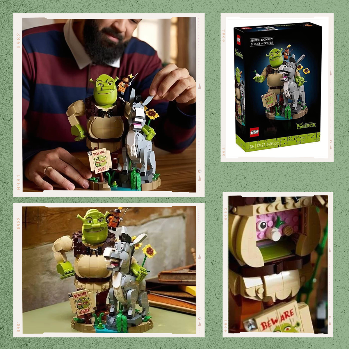 LEGO выпустит набор с фигурками Шрека, Осла и Кота в сапогах.