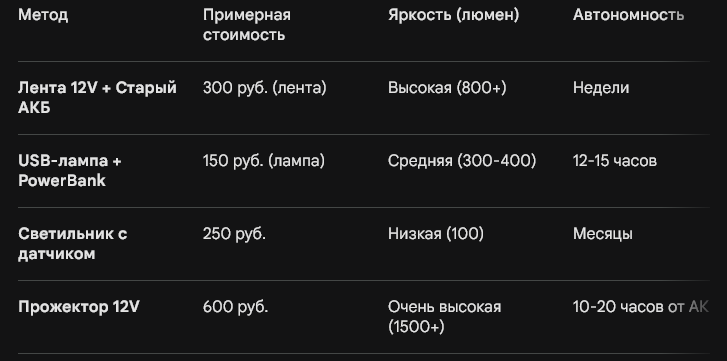 Заключение: Организовать свет без розеток сегодня — это вопрос смекалки, а не огромных денег. Для разовых посещений хватит датчиков движения, а для полноценной мастерской лучше собрать систему на 12 вольт.
