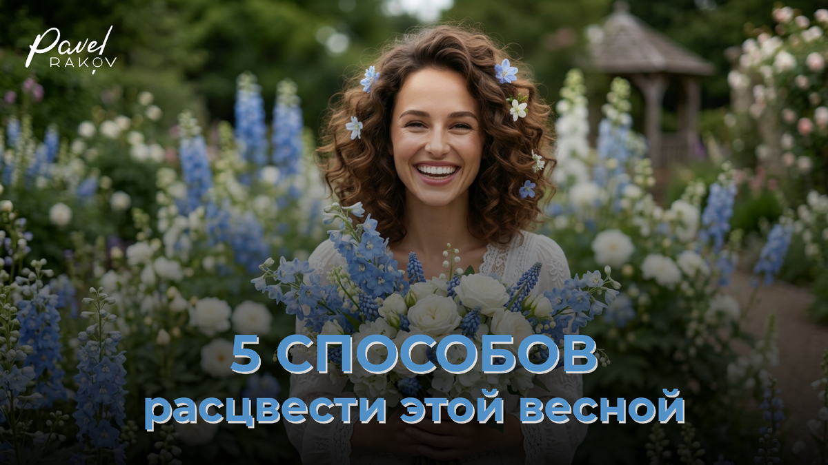 5 способов расцвести этой весной. Весна — время, когда природа пробуждается, а вместе с ней просыпается наше желание перемен. Мы ждём тепла, солнца, лёгкости, но часто вместо этого чувствуем усталость, тревогу, апатию. Вроде бы и хочется жить ярче, а сил нет. Знакомо? В этой статье я, Павел Раков, поделюсь 5 способами, которые помогут вам расцвести по-настоящему, почувствовать внутренний подъём, энергию и радость. И тогда карьера сама пойдёт вверх, отношения станут теплее, а тревога отступит. Почему я уверен в этих способах на все 100? За 30 лет работы я видел тысячи женщин, которые из серых «мышек» превращались в ярких, уверенных, любимых. И всё начиналось с этих шагов. 1. Начните с тела. Хроническая усталость, напряжение в шее, тяжесть в плечах, нарушение сна — это сигналы, что тело зажато, а это лишний стресс, дискомфорт и раздражение. Весной самое время снять эти блоки. Что делать: Добавьте в свою жизнь простые зарядки, тренировки, утреннюю растяжку, дыхательные упражнения (глубоки