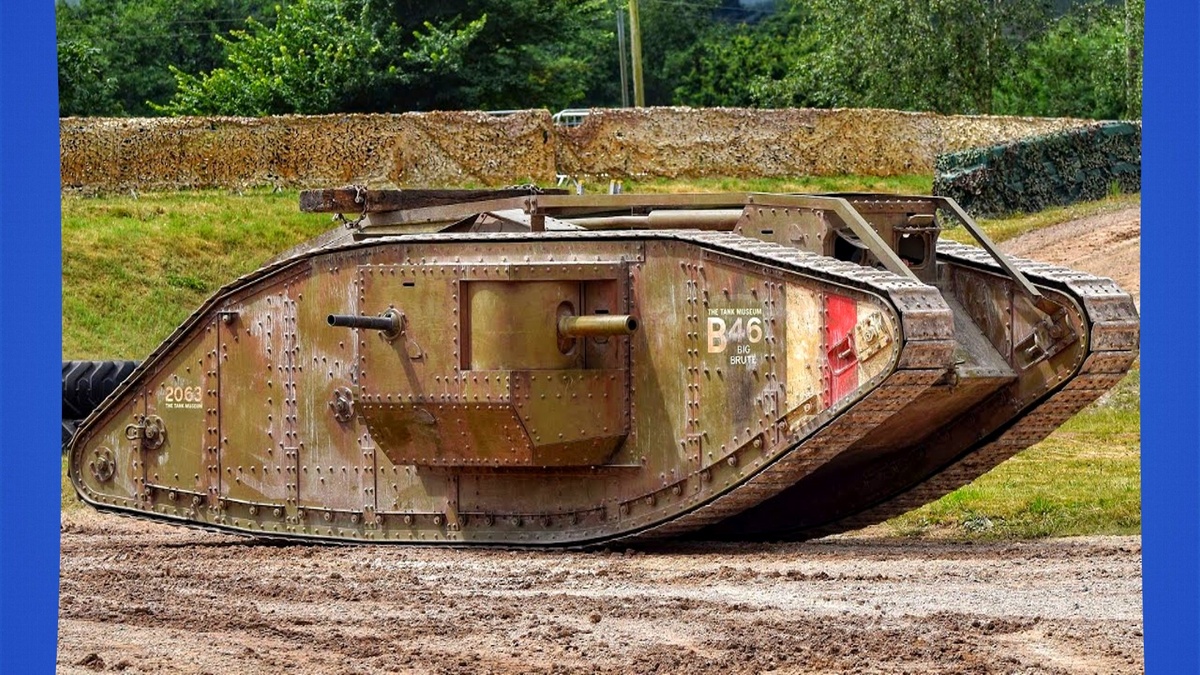 Интересный факт: своим скошенным, нависающим спереди корпусом танк был обязан техническому решению на испытаниях: инженеры увидили, что «Мать» цепляет носом землю на подъёмах, и срезали переднюю часть, а заднюю заострили. Так появился тот самый «ромбовидный» профиль, ставший символом британских танков Первой мировой.