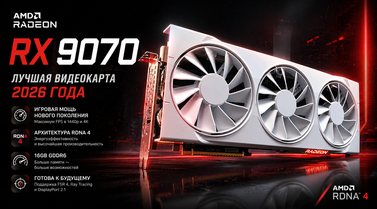 Слушай, выбирать видеокарту в 2026-м — это как ходить по минному полю. Везде маркетинг, везде «лучшая карта на рынке», а по факту — либо цена конская, либо производительность на уровне калькулятора. Но когда пыль оседает, а бенчмарки перестают врать, на сцене остаётся она — AMD Radeon RX 9070. Да, это не флагман. Да, это не абсолютный король горы. Но это, чёрт возьми, самый честный и злой кусок кремния, который можно купить прямо сейчас, если у тебя в жилах течёт не вода, а настоящий геймерский тестостерон. Давай сразу снимем розовые очки. RX 9070 — это второй эшелон RDNA 4. Она не рвёт RTX 5090 и даже не всегда догоняет свою старшую сестру, 9070 XT. Но знаешь что? Большинству из нас эти заоблачные цифры вообще не нужны. Мы хотим 144 FPS в Cyberpunk на ультрах и стабильные 60+ в 4K без необходимости продавать почку. И вот тут RX 9070 показывает свой характер. Если бы ко мне подошёл кто-то из пацанов и спросил: «Братан, что брать?», я бы молча ткнул пальцем в эту карту. Без вариантов. П