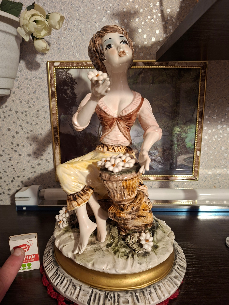 meshok.net❤️ БОЛЬШАЯ Фарфоровая статуэтка ДЕВУШКА С ЦВЕТАМИ авторская? КАПОДИМОНТЕ Capodimonte ИТАЛИЯ 20 в