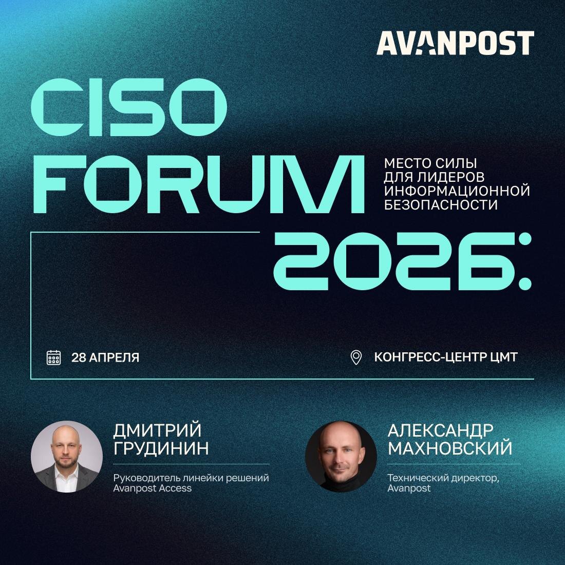 28 апреля пройдёт важное событие года для руководителей информационной безопасности. CISO Forum 2026 – площадка, где обсуждают то, как кибербезопасность встраивается в бизнес-архитектуру и работает на стратегию компании. ➡️ 10:00 – дискуссия на тему «Персональные данные (ПДн)» 🎤 Дмитрий Грудинин, руководитель линейки решений Avanpost Access, обсудит с экспертами актуальные вопросы: 🔵Новые тренды в защите персональных данных в 2026 году: квантовая устойчивость и шифрование 🔵Эволюция MFA: от паролей к поведенческой биометрии 🔵Технологии токенизации и анонимизации ПДн для соблюдения требований законодательства ➡️ 14:00 – Трек C «Объект атаки: что и как реально защищают» 🎤 Александр Махновский, технический директор Avanpost, выступит с докладом в рамках круглого стола на тему: «Когда атака приходит по договору: как защищать цепочки поставок со стороны identity» Разберём, как выстраивать защиту доступа внешних подрядчиков: как для краткосрочных проектов, так и для долгосрочног