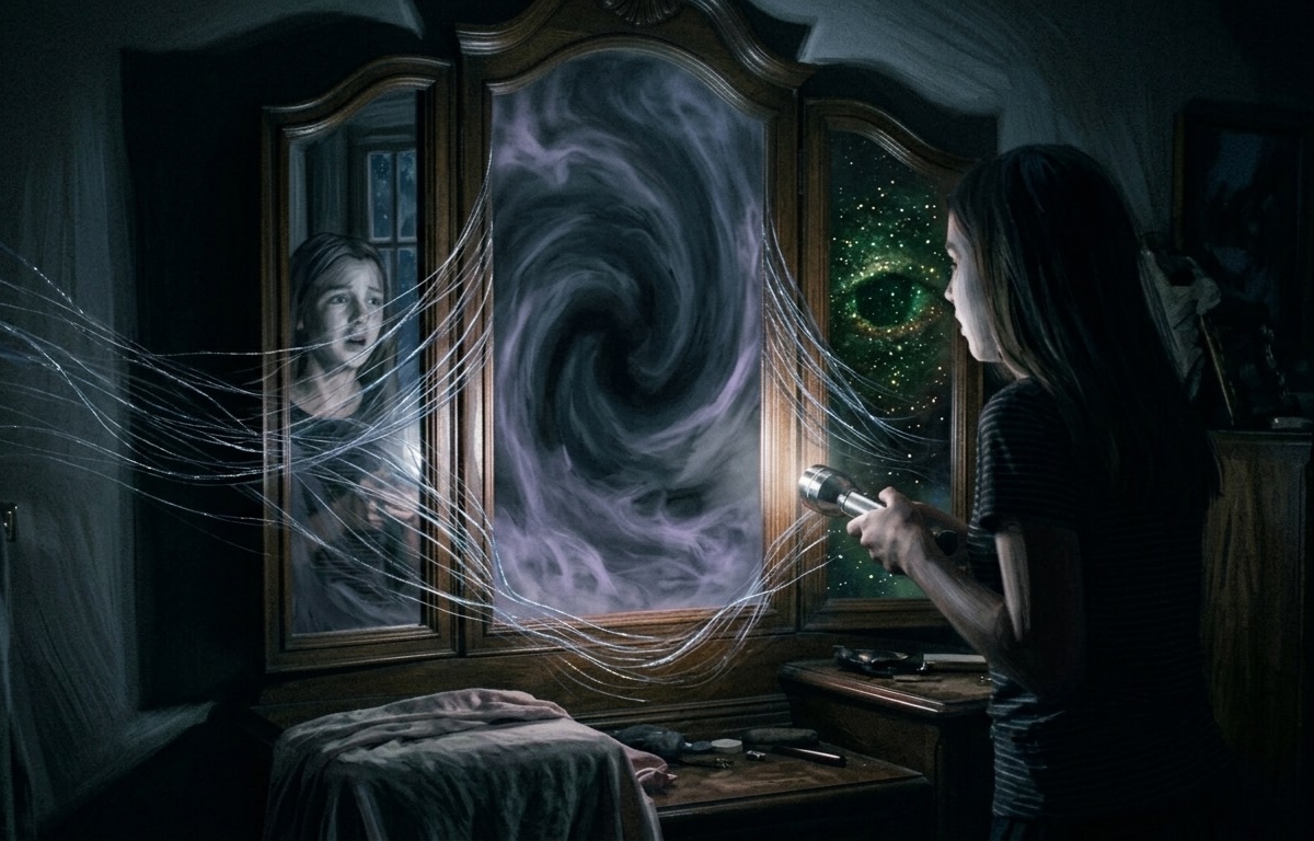 Реальность вернулась мгновенно, ударив по глазам. Тварь исчезла. Я стояла перед обычным старым трюмо, сжимая в дрожащей руке погасший фонарик. Из зеркала на меня смотрела бледная девушка с расширенными от ужаса зрачками.