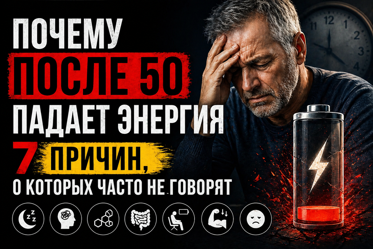 И чаще всего это игнорируют. 👉 «Возраст» - говорят. Но это ошибка. Это может быть сигналом, что организм работает не так, как раньше. Разберёмся спокойно. Вы спите, но не высыпаетесь? После 50: 👉 организм не восстанавливается И энергия просто не возвращается. Вы замечали, что раньше хватало меньше сна? Многие начинают меньше двигаться. «Сил нет - значит надо отдыхать». Но есть момент, о котором почти никто не говорит: 👉 чем меньше движения - тем меньше энергии Потому что: Чай с печеньем, сладкое, быстрые перекусы. Знакомо? 👉 сахар даёт ложную энергию Что происходит: И это повторяется каждый день. После 50 меняется гормональный фон. 👉 снижается тестостерон/эстроген