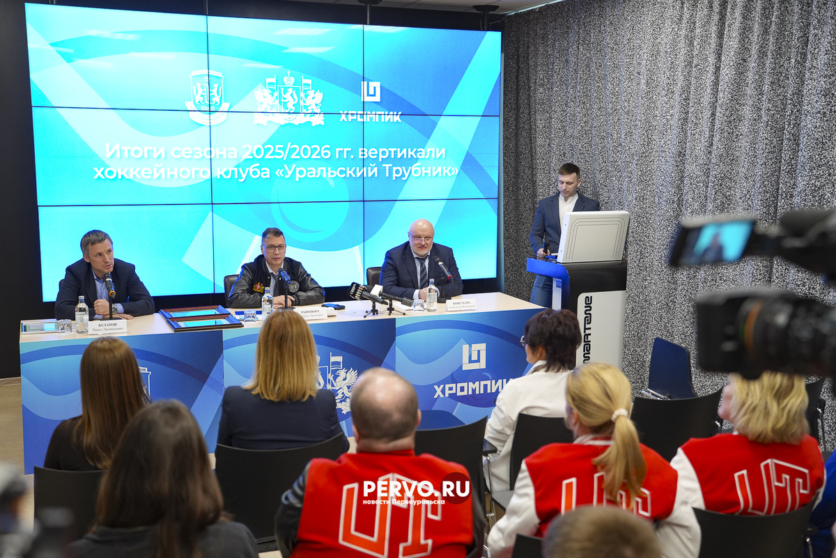 Сегодня в Инновационном культурном центре (г. Первоуральск) прошла пресс‑конференция, посвящённая итогам сезона 2025/2026 годов вертикали ХК «Уральский Трубник». Министр физической культуры и спорта Свердловской области Леонид Аронович Рапопорт, генеральный директор АО «Хромпик» Александр Федорович Кожухарь, директор ХК «Уральский Трубник» и президент Академии хоккея с мячом «Уральский трубник» Павел Леонидович Булатов обсудили исторические достижения клуба, меры поддержки и планы по развитию хоккея с мячом.