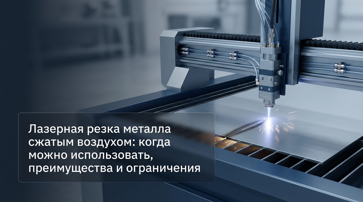 Оптоволоконные лазерные станки (1–30 кВт) позволяют резать металл не только чистым азотом или кислородом, но и обычным сжатым воздухом. Это один из самых эффективных способов снизить себестоимость реза в 3–7 раз, особенно на тонколистовом металле. Самый выгодный вариант. Толщина: 0,5–6 мм (оптимально до 4 мм) — скорость выше, чем на кислороде, и в 1,5–2 раза дешевле, чем на азоте. 6–12 мм — уже заметна окалина, требуется зачистка. >12 мм — воздух использовать нецелесообразно. Можно, но с ограничениями. Толщина: 0,5–3 мм (максимум 4 мм на станках 6–12 кВт). Последствия: Вывод: подходит для конструкционных изделий, которые потом красят или шлифуют. Толщина: 0,5–2(3) мм. Особенности: Толщина: до 1,5–2 мм (на станках от 6 кВт и выше). Минусы: сильное окисление цинка → много дыма, кромка темнеет, возможны микротрещины. Требуется мощная вытяжка и последующая шлифовка. Резка воздухом недопустима! При температуре >600 °C титан активно поглощает кислород и азот → образуется альфированный сл
