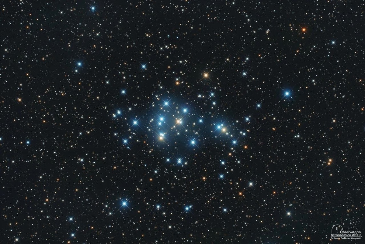 ») Одно из ближайших и самых ярких рассеянных звездных скоплений на ночном небе, Скопление «Ясли», также известное как скопление «Улей» и Мессье 44, с древних времен восхищало людей как едва различимое туманное пятно, видимое невооруженным глазом в созвездии Рака. Это обширное скопление, расположенное примерно в 575 световых годах от нас, содержит несколько сотен звезд, слабо связанных гравитацией. Все они образовались из одного гигантского молекулярного облака примерно 600 миллионов лет назад. В бинокль или небольшой телескоп это мягкое свечение превращается в скопление множества звезд, за что оно и получило свое название, став одним из самых манящих сокровищ глубокого космоса. «Ясли» — это не просто красивое зрелище, это настоящая лаборатория для изучения эволюции звезд в обычной среде. Звезды в скоплении различаются по массе и яркости, а по возрасту оно занимает промежуточное положение между более молодыми рассеянными скоплениями и более старыми, более разреженными звездными г