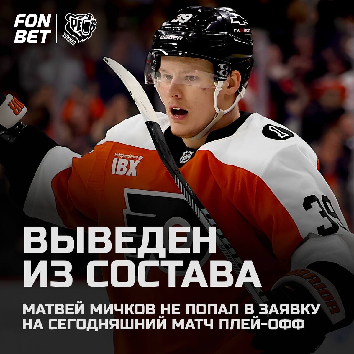 ! Нападающий «Филадельфии» Матвей Мичков не сыграет сегодня ночью, тренерский штаб принял решение вывести российского форварда из основного состава. В текущем плей‑офф НХЛ на счету Мичкова пока нет очков. 🐻 Слышишь? ЭТО РЁВ ХОККЕЯ