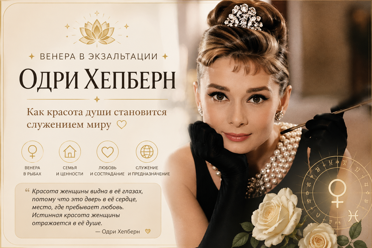Венера в Рыбах: как карта Одри Хепберн раскрывает природу любви и сострадания