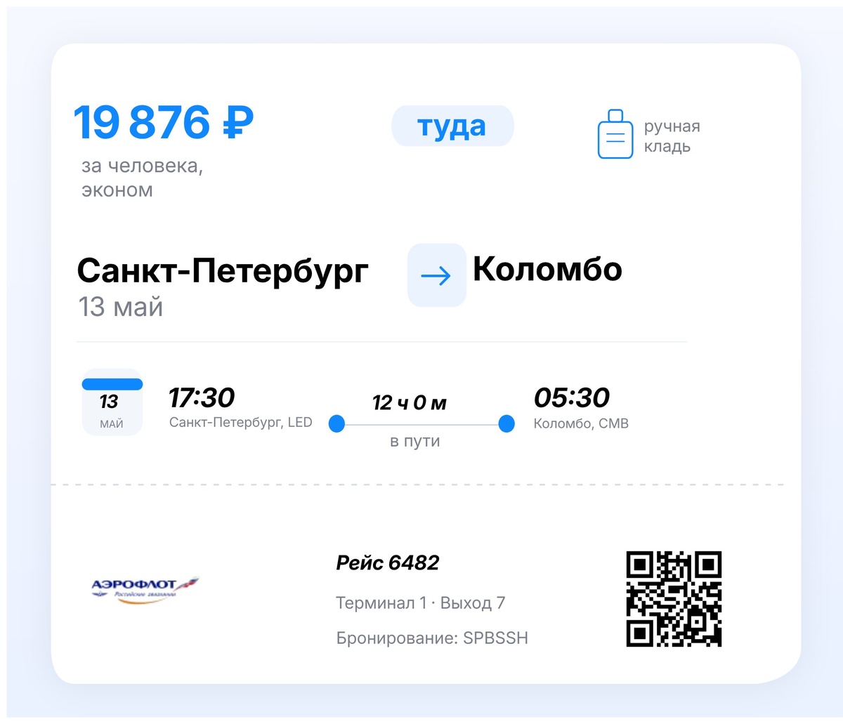 ✈️ Санкт-Петербург - Коломбо, от 19876 рублей