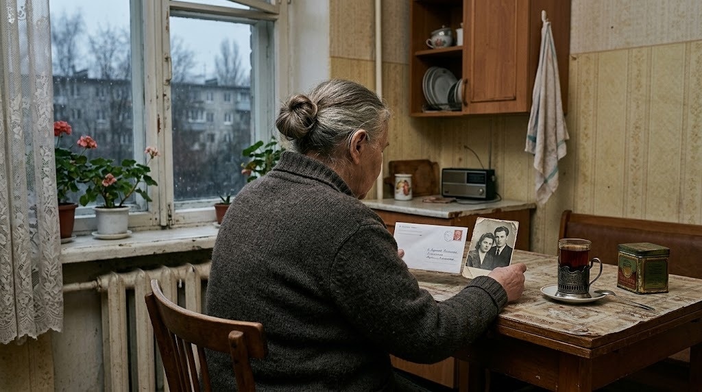 Почтальон уже ушёл. Нина стояла в прихожей и смотрела на конверт. «Карелину А. В.» – написано синей ручкой, крупно, немного наискось. Не типографский шрифт, не печать – живая рука писала это. Обратного адреса нет. Штемпель почти нечитаемый, но она разобрала: посёлок с длинным северным названием и дата – середина сентября.