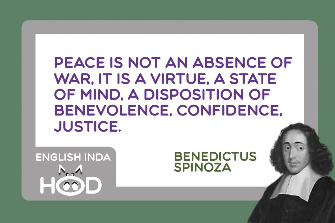 Мир - это не отсутствие войны, это добродетель, состояние ума, склонность к доброжелательности, уверенности, справедливости