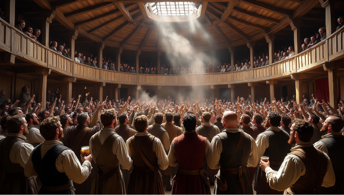 Мы привыкли думать, что театр — это место, где дамы в вечерних платьях и господа в смокингах соблюдают мертвую тишину. Но если бы вы перенеслись на 400 лет назад в лондонский театр «Глобус», вы бы подумали, что попали на рок-концерт или футбольный матч в неблагополучном районе. Эпоха Елизаветы I — это время, когда театр был самым опасным и популярным развлечением в мире. Сегодня мы заглянем за кулисы того самого театра, где за рождение шедевров платили запахом гнилых яблок и риском получить ножевое ранение. 1. «Стоячие места» для черни: Театр как фан-зона Билет в партер стоил всего один пенни — столько же, сколько кружка дешевого эля. Эти люди назывались «groundlings» (те, кто стоит на земле). Они набивались в пространство перед сценой так плотно, что между ними нельзя было просунуть палец. Атмосфера: Никаких кресел. Люди ели орехи, пили пиво, справляли нужду прямо там же и не стеснялись перебивать актеров. Если зрителю не нравился монолог Гамлета, в актера летела обглоданная кость или
