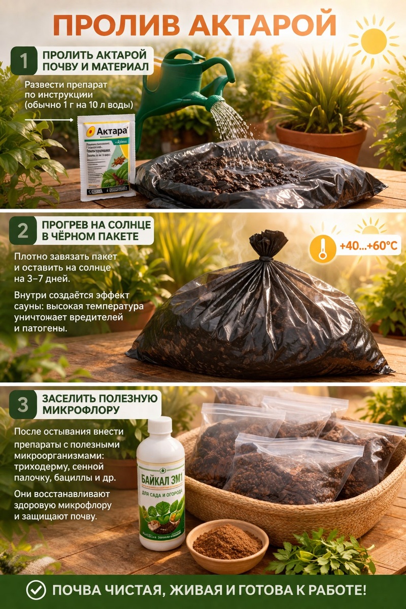 Вердикт: работает, но после прокаливания нужно обязательно заселять грунт полезными микроорганизмами. Пролить Фитоспорином или Триходермой. Иначе растение будет сидеть в мёртвом субстрате и чахнуть.