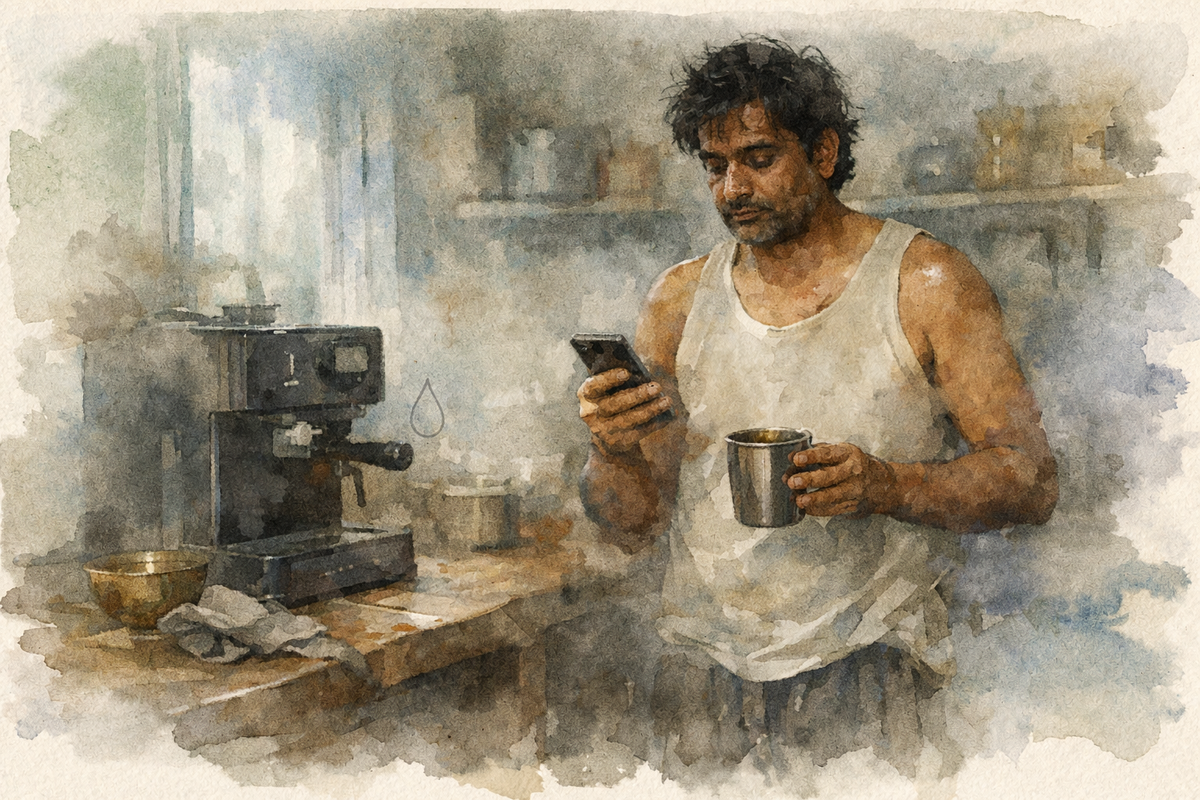 6:47. Будильник. Рука тянется к телефону. Пять минут в ленте - «дать себе время проснуться». Потом кухня, кофемашина, первый глоток. Холодный стакан воды где-то между делом или вообще никакой воды. Завтрак - если успеть, если захотеть, если есть что быстрое. Именно так начинается большинство дней у женщин и мужчин, с которыми я работаю. И именно так начинается спад - не в обед, не к вечеру. В первые двадцать минут после пробуждения. Несколько месяцев назад на консультации была женщина, 48 лет. Жаловалась на одно: «Утро - самое тяжёлое время суток. Разгуливаюсь только к полудню». Говорила спокойно, как про погоду. Как будто так и должно быть после 40. Я спросил: что происходит в первые полчаса после пробуждения? Задумалась. «Встаю, иду на кухню, включаю кофемашину. Пью кофе. Потом собираюсь». Я слушал и видел картину целиком. Тело просыпается с минимальным агни - пищеварительный огонь после ночи на самом низком уровне. Агни - это не образ и не метафора. Это конкретная сила, от которой з