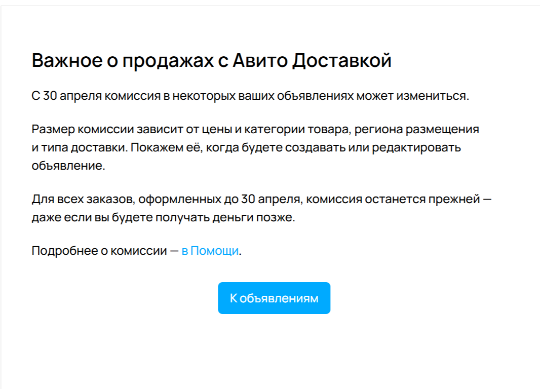 Авито опять крутит комиссию за сделки с доставкой, и продавцам об этом сообщают одной строчкой в интерфейсе.