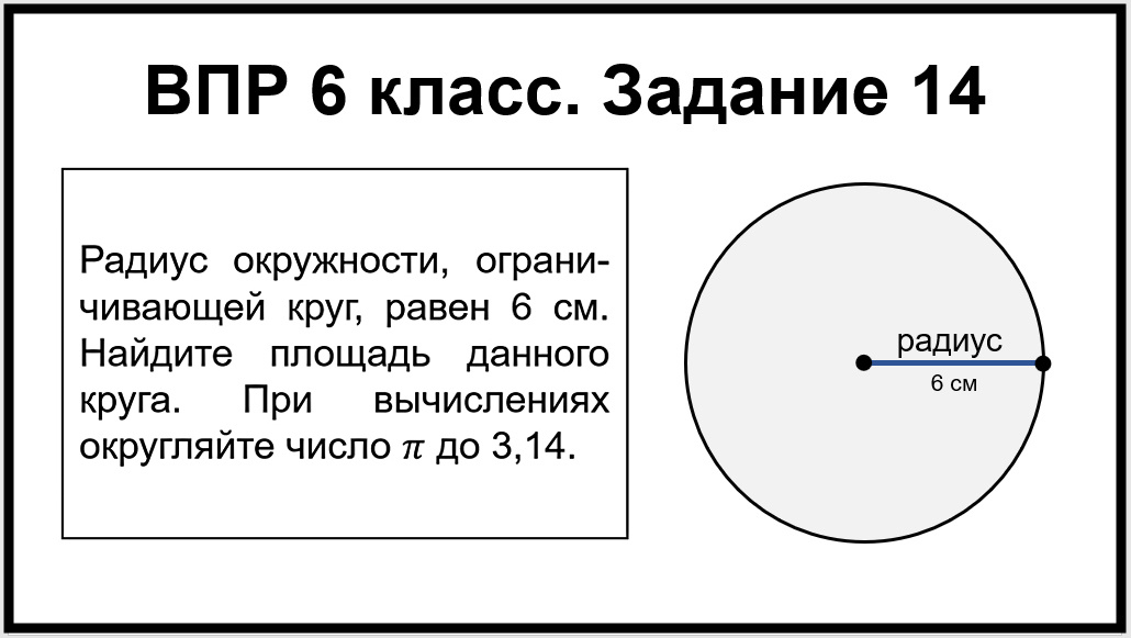 ВПР 6 класс задание 14: как найти площадь круга с радиусом 6 см