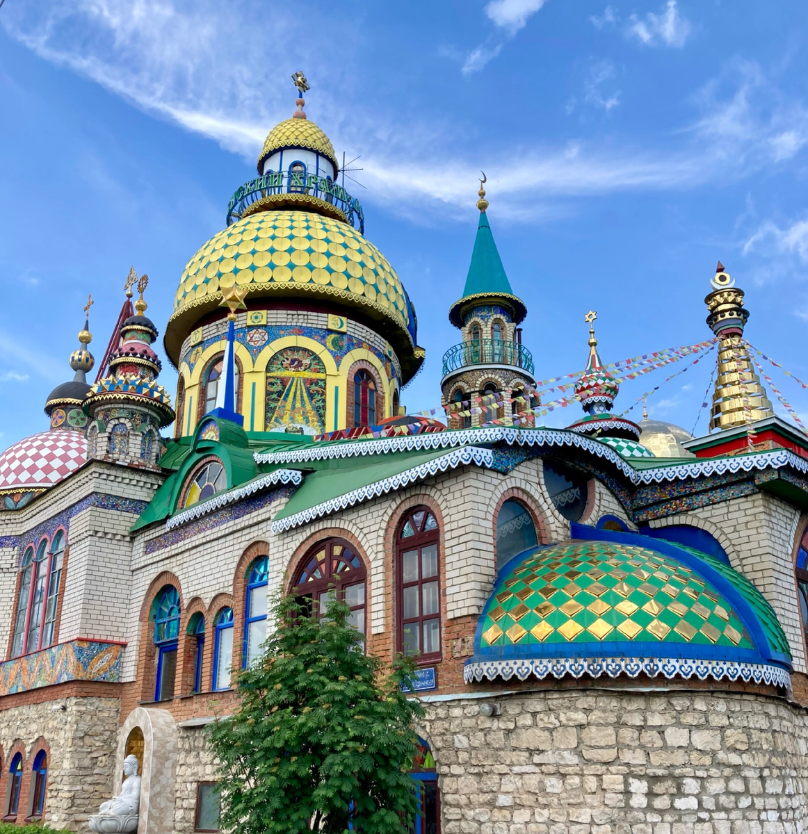 Название «Храм всех религий» полностью оправдано его обликом. В едином архитектурном ансамбле Ильдар Ханов объединил элементы мировых религий и цивилизаций. Здесь соседствуют: православный купол и мусульманский минарет, иудейская синагога и буддийская пагода, загадочные символы Древнего Египта.