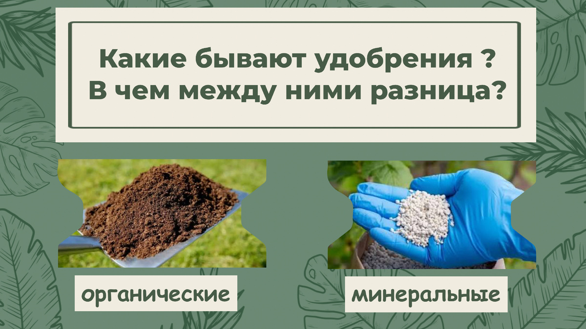 Все мы хотим получать большой и вкусный урожай 🍅🥬 и как можно дольше радоваться цветению наших садов🌸🌼. И конечно, из благих побуждений мы вносим в почву различные удобрения, порой, глубоко не разбираясь в истинных потребностях нашей почвы. Давайте попробуем разобраться, какие удобрения бывают, и какая между ними разница. Существует много классификаций удобрений, например, по способу внесения (корневые, внекорневые и т.д.), но основная классификация все таки, по составу. Выделяют две группы- минеральные и органические. 📍Минеральные удобрения (азотные, фосфоритные, калийные) это неорганические соединения, полученные химическим способом, чаще всего промышленным путем. 📍Органическое удобрение (навоз, компост, перегной) это натуральные вещества растительного или животного происхождения, улучшающие структуру почвы и питающие микрофлору. Они естественно встроены в природный круговорот веществ. Эти два вида удобрений существенно между собой отличаются. Каждый сам для себя решает, какому