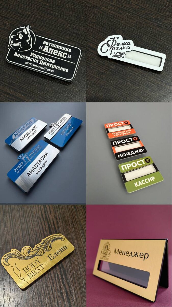 👥 Мы изготавливаем бейджики из разных материалов: — пластик — акрил — двухслойный пластик с гравировкой Можно выбрать формат: 🔹 с окошком для сменного имени 🔹 с постоянной гравировкой 🔹 с логотипом компании 🔹 в любом цвете и форме Подберём вариант под стиль вашего бизнеса и поможем с макетом🤍💥