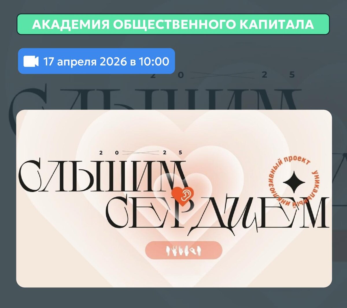 📅 17 апреля в Академии пройдет вебинар на тему: «Платформа инклюзивного цифрового контента «Слышим Сердцем