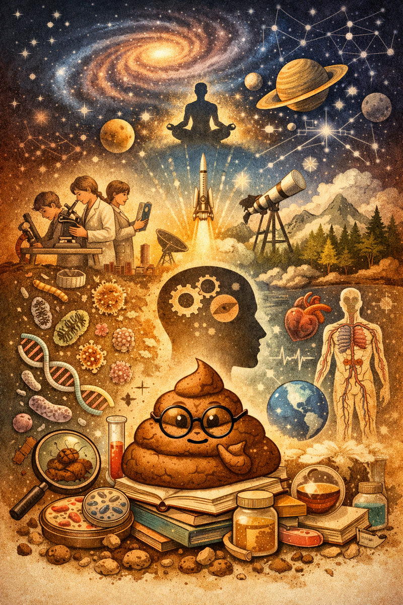 Он аморфен, низок, вытеснен — поэтому на него легко спроецировать что угодно: от биохимии до социальных иерархий (вспомните «теорию мусора» Дугласа или ритуалы чистоты/нечистоты). Учёный, изучающий кал, на самом деле изучает границы своего «высокого» — что он решает считать значимым, а что «отходами». - Они не знают, что их наука — тоже «кал» в этом смысле.