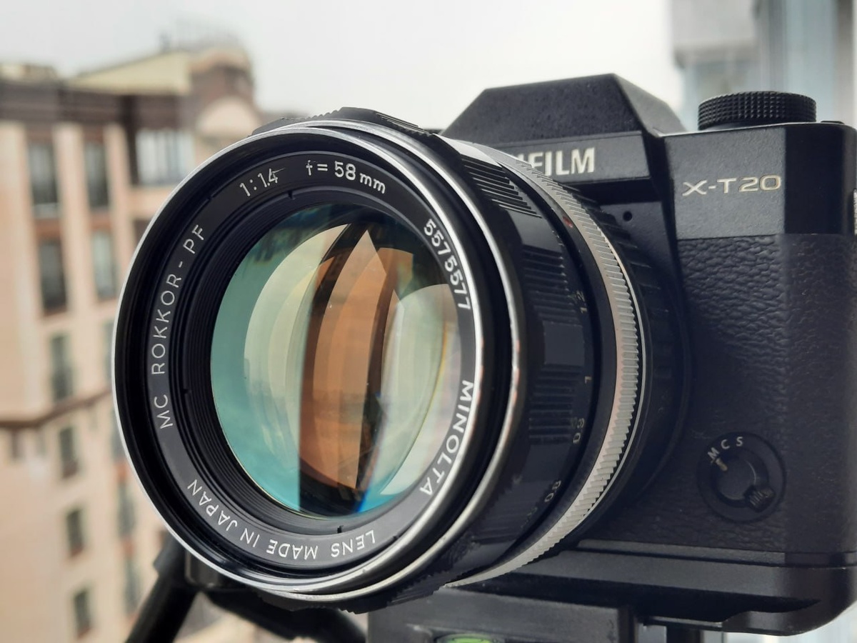 MINOLTA ROKKOR-PF 1.4/58 Нормальный объектив с фокусным расстоянием 58мм и относительным отверстием f/1.4 для пленочных камер Minolta SR. Имеет "классическую" для полтинников тех лет схему "планар", точнее одну из ее вариаций. Выпускался в нескольких модификациях с 1961 по 1972 гг. Отмечу, что из-за рабочего отрезка его можно установить только на беззеркальные камеры. Либо если нет беззеркалки - переделывать на зеркальный Canon - наподобие, как я переделывал Canon FD 1.4/50. Сам по себе объектив в работе удобный, в руке лежит хорошо. Наводиться на резкость приятно и удобно. Очень ценится за его "светосилу" - f/1.4. Вот на этом и хочу заострить внимание: Объектив на открытой диафрагме очень софтит. И это не особенность конкретного экземпляра, а особенность именно этой модели. Софт уходит, уже начиная с f/2. Вообще уходит. Т.е. открытая f/1.4 у него ,так скажем, "условно рабочая". Из-за этого софта теряется детализация, картинка покрывается пеленой, а все яркие объекты начинают "