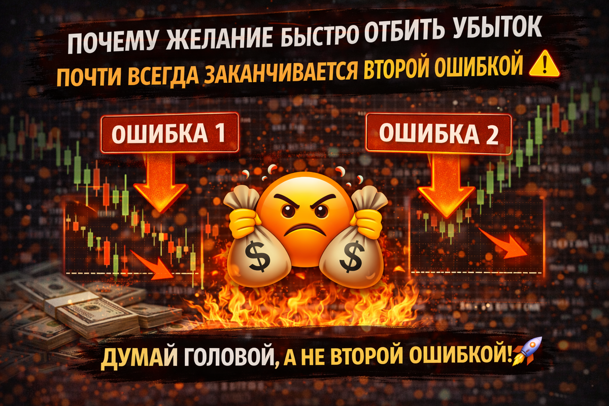 На первый взгляд в ней нет ничего страшного. Ну подумаешь, человек хочет вернуть своё. Логично же. Но рынок устроен так, что именно в этот момент он чаще всего получает не возврат, а вторую ошибку подряд. А иногда и третью, если совсем понесло 😏 Проблема в том, что после убытка трейдер редко остаётся в нейтральном состоянии. Он уже не просто смотрит на график. Он смотрит на него через эмоцию. Через раздражение. Через уязвлённое самолюбие. Через внутреннее чувство: “рынок мне должен”. А вот это уже плохая территория. Рынок никому ничего не должен. Он не знает, что ты только что словил стоп. Ему вообще всё равно, в каком ты настроении, сколько ты сегодня потерял и как сильно тебе хочется вернуть деньги до ужина. Он просто двигается. А вот трейдер после убытка часто начинает двигаться неправильно. Сначала была первая ошибка: плохой вход, поспешное решение, слабая фильтрация ил