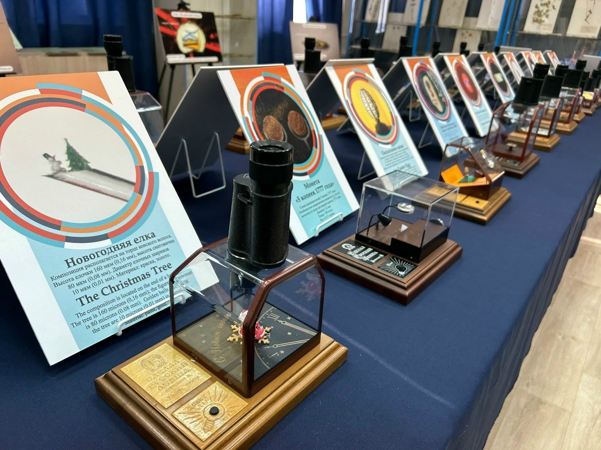 Представьте мир, где самые изысканные произведения искусства могут уместиться на рисовом зернышке, в игольном ушке или даже в мельчайшей пылинке. Таков мир Владимира Анискина, гениального новосибирского мастера микроминиатюр, которого по праву сравнивают с легендарным Левшой. Его искусство, требующее филигранной точности, безграничного терпения и глубокой фантазии, сейчас завораживает посетителей Североуральского краеведческого музея. Владимир Михайлович, доктор физико-математических наук, нашел своё призвание и в строгой науке, и в удивительном мире микроминиатюр. Его путь в микроискусство начался в 1998 году с символического подарка маме – надписи на рисовом зернышке, на создание которой ушло три месяца освоения техники и подготовки инструмента. Через два года родилось первое серьёзное произведение – страница из рассказа Николая Лескова «Левша», уместившаяся на рисовом зернышке и содержащая 2027 букв, рассказывающих о знаменитой блохе. Анискин не боится экспериментировать с материала