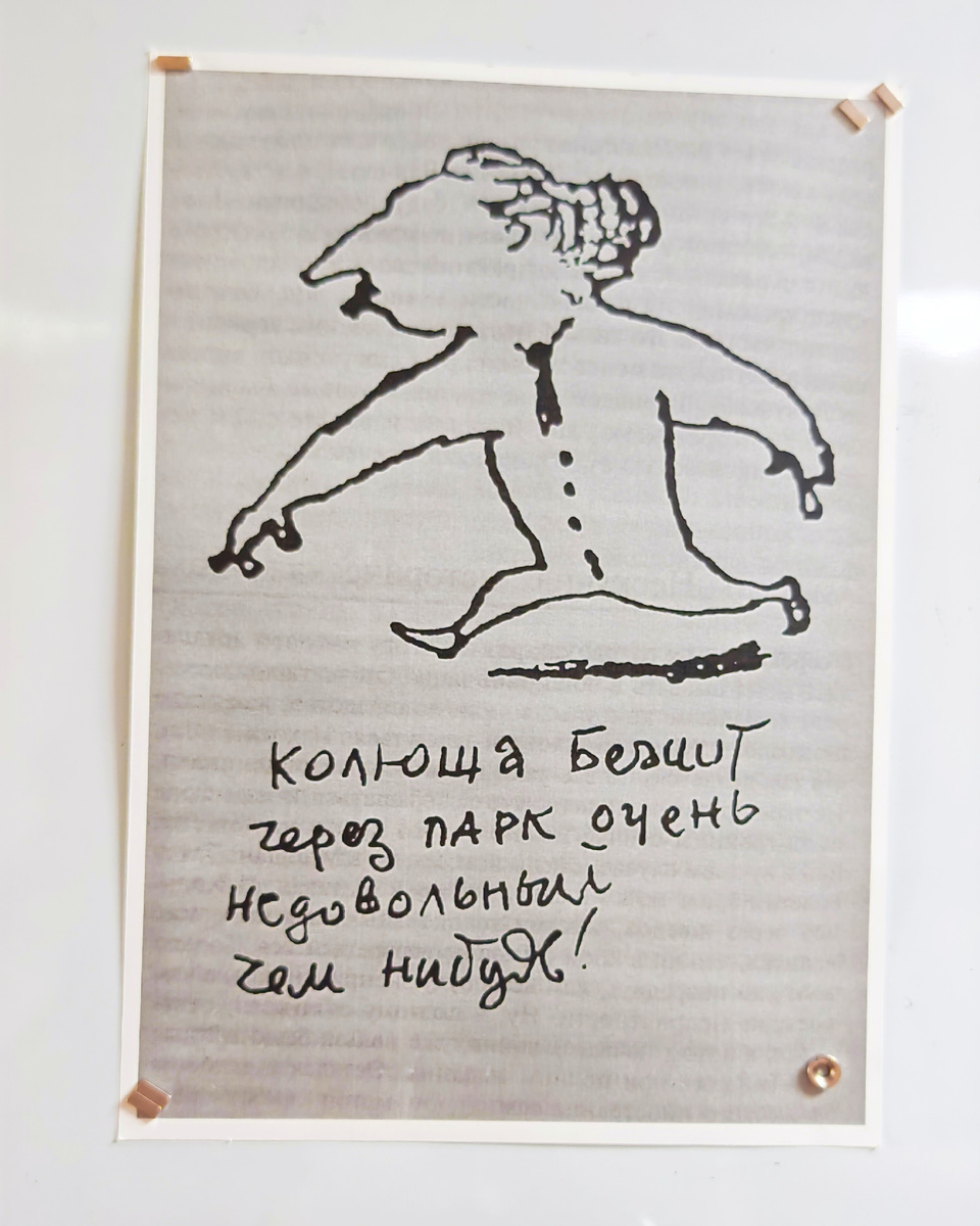 При входе - стенд с биографией советского биолога и генетика Николая Тимофеева-Ресовского. Там висит смешная карикатура на него, которую нарисовала на мужа его жена, и подписала: "Колюша бежит через парк очень недовольный чем-нибудь"