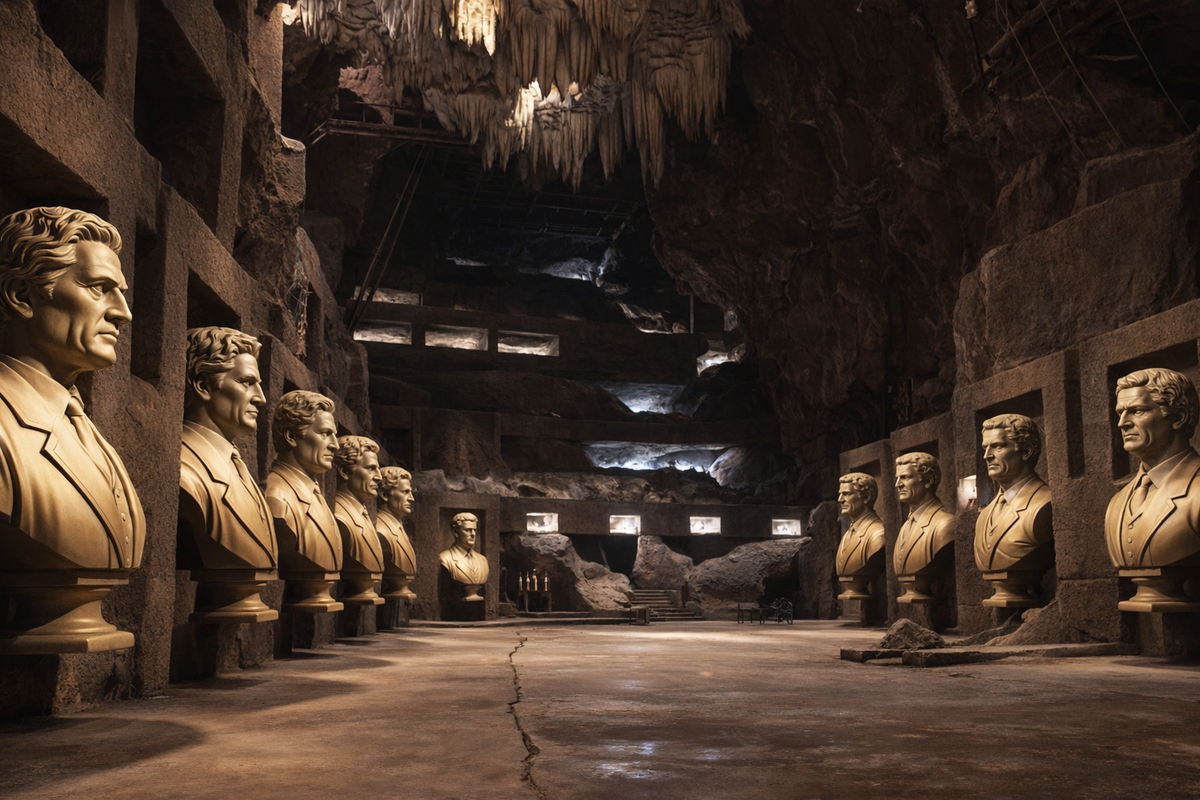 В 1938 году, когда лица уже проступали из скалы, Борглум отдал приказ: взрывать тоннель за спиной Линкольна. Пробили пещеру глубиной 20 метров. Это должен был быть Зал записей — с бронзовыми дверями, орнаментом и подсветкой. Внутри, на алюминиевых листах, не боящихся времени, планировалось выбить главные документы американской истории, бюсты великих людей и достижения страны. Вход охраняла бы бронзовая птица с размахом крыльев в 12 метров.
