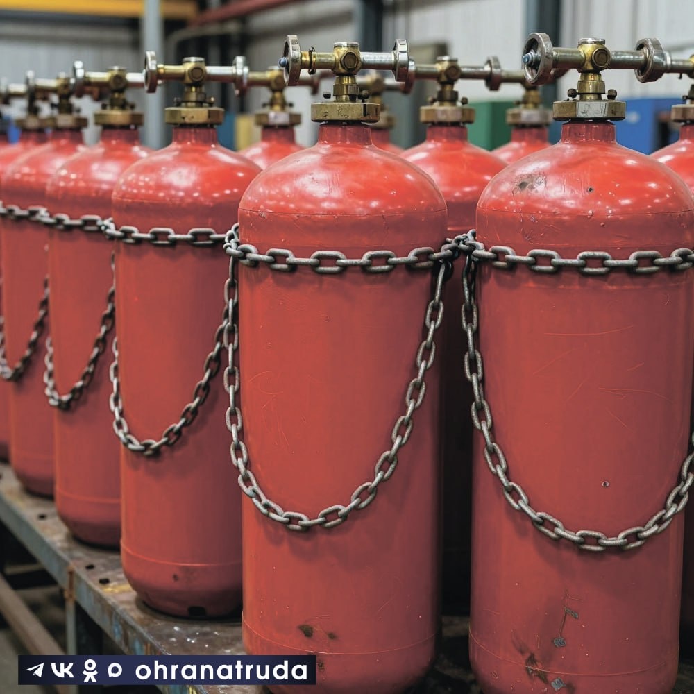 Основные правила хранения: 🔴 Баллоны с башмаками держать вертикально в специальных гнездах. 🔴 Баллоны без башмаков размещать горизонтально на стеллажах. 🔴 Высота штабеля при горизонтальном хранении - не более 1,5 м. 🔴 Минимальная высота склада - 3,25 м. Требования к помещению: 🟡 Наличие эффективной вентиляции. 🟡 Защита от солнечных лучей. 🟡 Чистота и отсутствие контакта с маслом. 🟡 Регулярный контроль газовоздушной среды. ☝️ Важные запреты: 🔵 Переноска на плечах и спине. 🔵 Бросание и толкание баллонов. 🔵 Использование открытого огня. 🔵 Работа в замасленной одежде. 🔵 Хранение без предохранительных колпаков. 👉 Особые условия: 🔵 Раздельное хранение горючих газов и окислителей 🔵 Защита от нагревательных приборов. 🔵 При хранении на улице - защита от осадков и тепла. Соблюдение этих правил - обязательное условие безопасной работы с газовыми баллонами. ⭐️ проголосовать за канал Подписаться на канал "Охрана труда" 📱 ТГ 📱 ВК 📱 ОК 📱 Дзен 📲 Макс #Охра