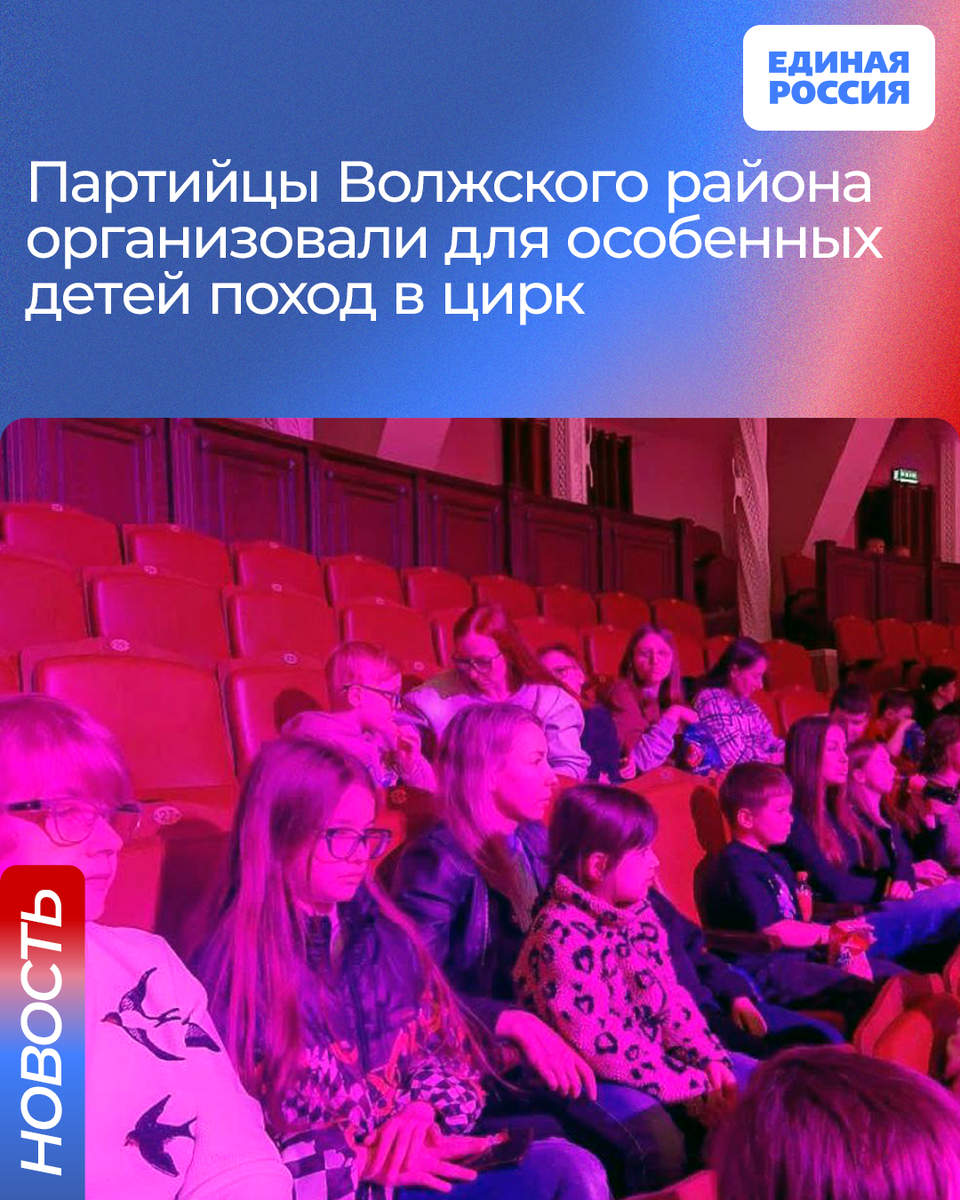 По инициативе местного координатора партийного проекта «Единая страна - доступная среда» Волжского местного отделения Единой России, Гюзели Фроловой, дети с ограниченными возможностями здоровья побывали на представлении «Тигры на земле и в воздухе» в саратовском цирке им. Братьев Никитиных.