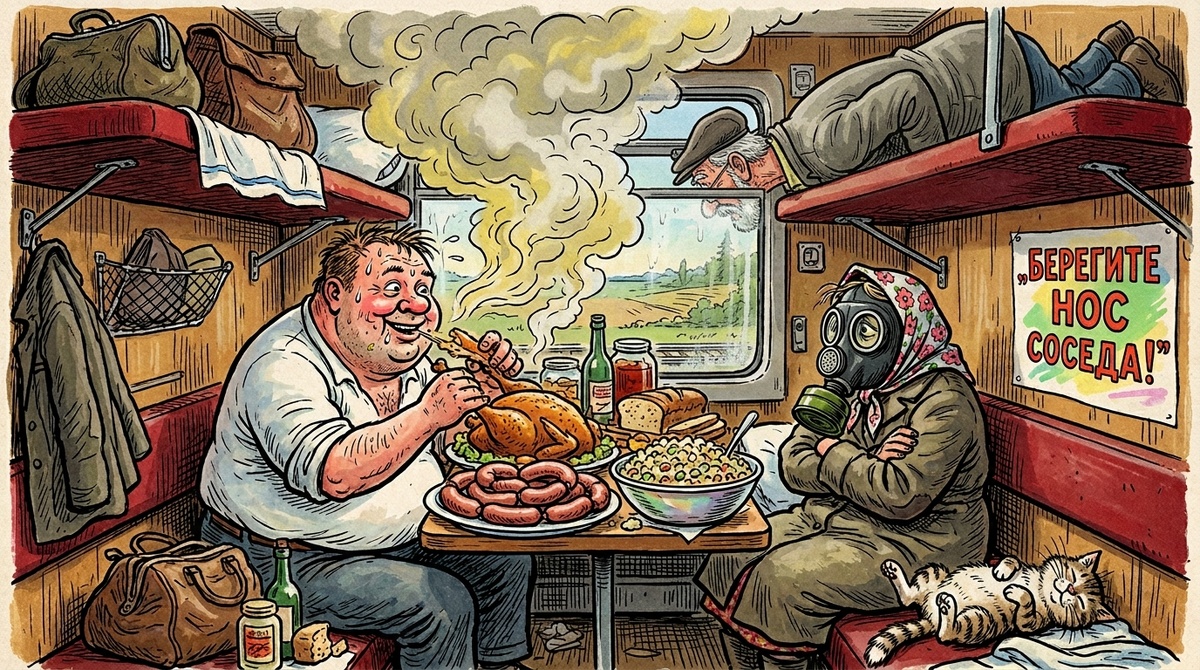 Вот скажите мне, дорогие Вы мои, кто придумал, что яйца — это лучшая дорожная еда? Нет, я понимаю, сытно, дешево, сердито. Но Вы когда-нибудь заходили в купе через три часа после того, как там кто-то три «категории С0» оприходовал? Это ж не запах, это оружие массового поражения. Сероводород — штука коварная.