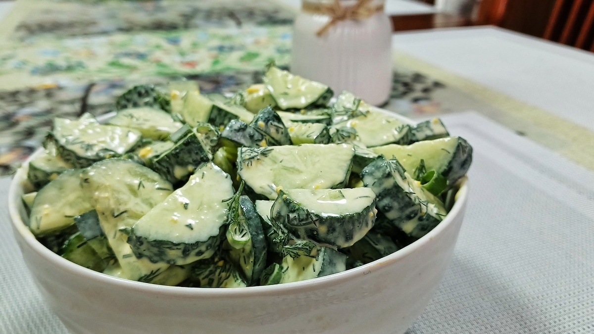 Салат из огурцов в горчичном соусе.