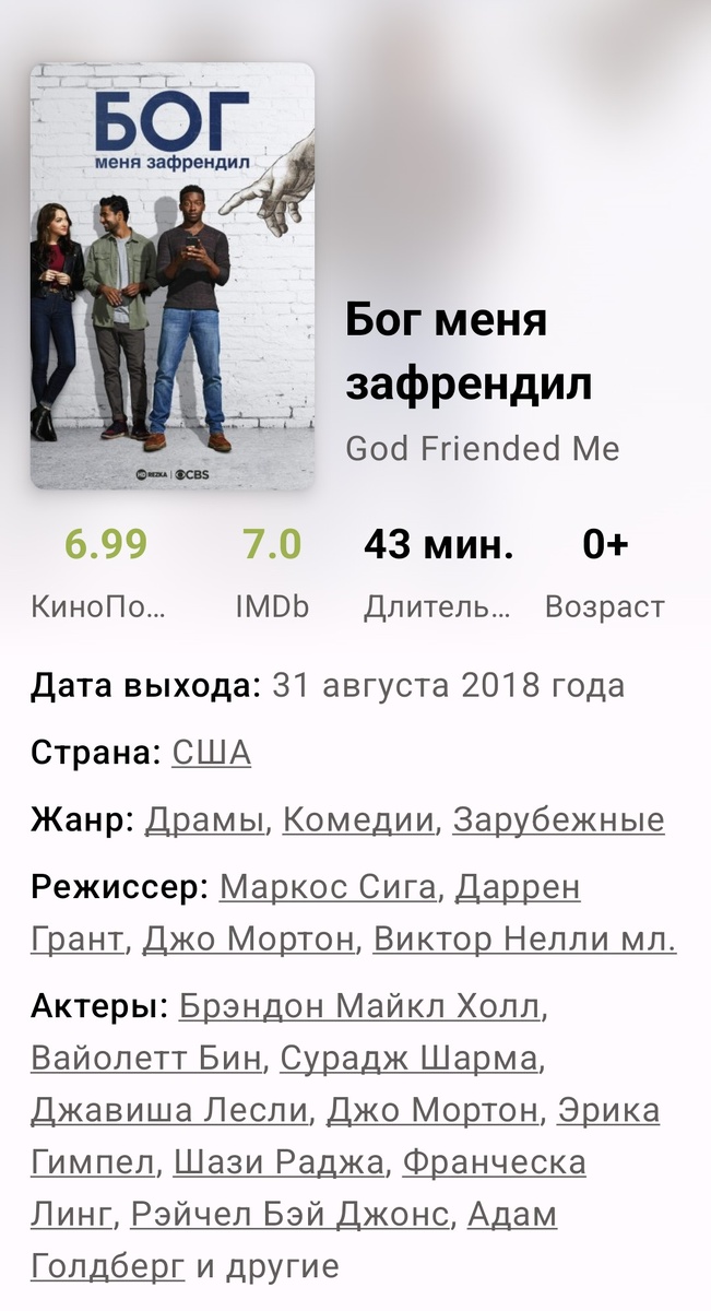 Меня это зацепило. Не из-за религиозного трепета, а из-за абсурдности и одновременно интриги. «Что за чушь?» — подумал я. Полез в описание. Оказалось, это нарезка из сериала «Бог меня зафрендил» (оригинальное название God Friended Me), который вышел в далеком 2018 году.